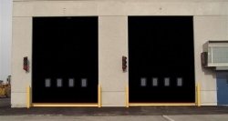 Similar in function to a rolling steel door, these high performance fabric doors offer high speed, airtight sealing, and minimal clearance requirements all in the same door. Curtains are typically made from reinforced PVC or vinyl, and can operate at up to 100″ per second.