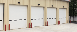 Aluminum style and rail construction fitted with glazing or aluminum panels. Glazing options from single pane to insulated and tempered Low-E coated lites can be combined with anodized or painted aluminum to provide a unique opening solution to your project. Local Fire Stations and emergency response bays often benefit from their clear view of the exterior to make a safe exit when necessary. Alternatively, a rising number of custom storefronts and restaurant users are taking full advantage of these sleek doors to provide flexible spaces such as outside dining space.